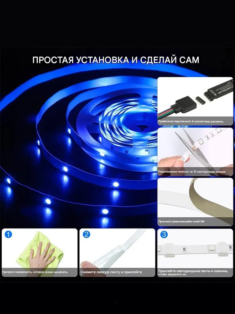ARGB Светодиодная лента 5 Вт, Разноцветная лента, для дома, для компьютера, для вывески 5 Метров 5м GerShock